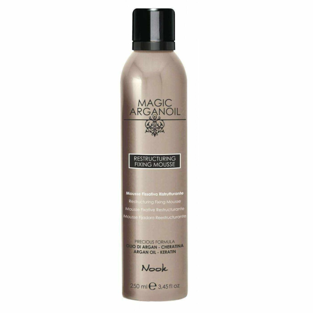 Nook Magic Arganöl Restructuring Fixing Mousse Köpük 250ml Özellik Saçı ağırlaştırmadan aşırı elastikiyet, parlaklık ve hacim kazandırır. İnce ve kıvırcık saçlar için idealdir. Uygulama Şampuanlamadan sonra, havluyla kurutulmuş saçların üzerine sürün ve taraklayın. Fön makinesi ve her zamanki gibi saç şekillendirin.